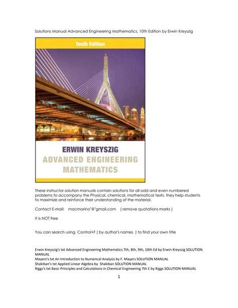 Presently you are looking for an Advanced Engineering Mathematics 10th Erwin Solutions Manual example that will we provide here inside some form of document formats like as PDF, Doc, Strength Point, as well as images that will will make it simpler for you to create an Advanced Engineering Mathematics 10th Erwin Solutions Manual yourself. For a clearer look, you can open several examples below. All the good examples about Advanced Engineering Mathematics 10th Erwin Solutions Manual about this web site, we get from a number of sources so you could create a better file of your own.If the search you get here does not match what you are seeking for, please use the search feature that we have got provided here. You will be free to download something that we provide here, expense cost you typically the slightest.